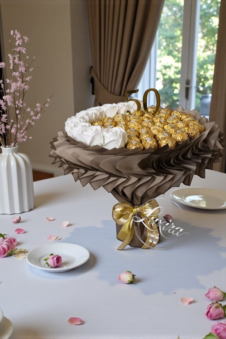 Prémiová kytica s ferrero zlatá