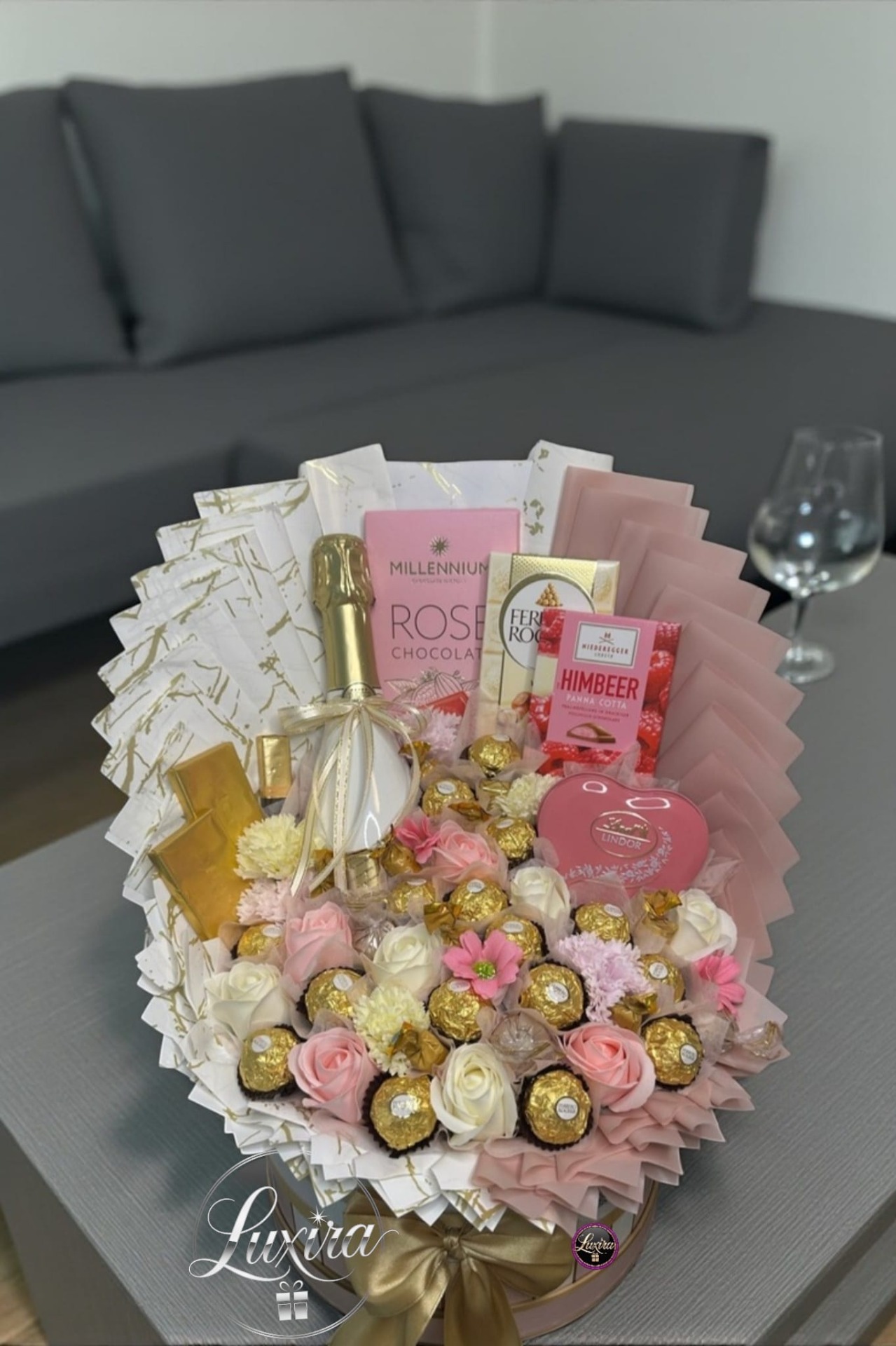 Prémiový darčekový box rúžovo bielo zlatý